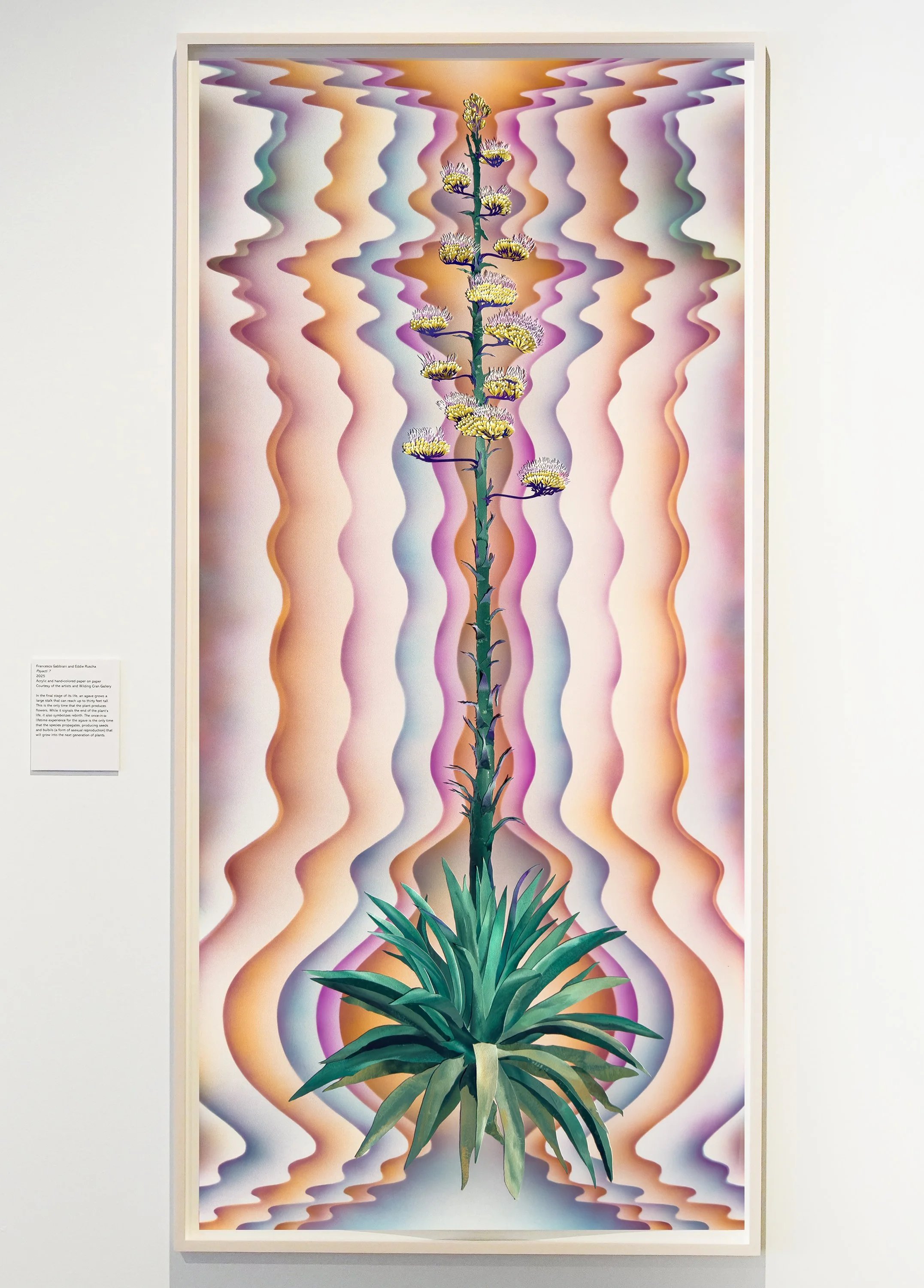 By inviting the viewer into a space of intuitive knowledge and spiritual resonance, The Messengers explores the resilient adaptability of plants and the ways in which they can reinform notions of transcendence and survival. The largest piece in the show, Psyacti 6, centers a blooming agave plant. As an allegory of endurance in the face of adversity, the agave blooms just before it dies -- a final act which simultaneously imparts the symbolic beauty of life’s impermanence, while functioning as an evolutionary means of seed dispersal, bringing new life through death.